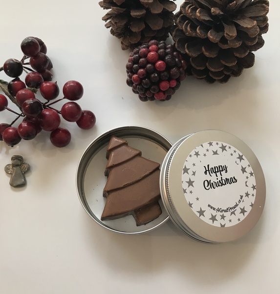 Two very festive chocolate trees in a wonderful presentation box which you can personalise and keep as a memento (approx 90g)